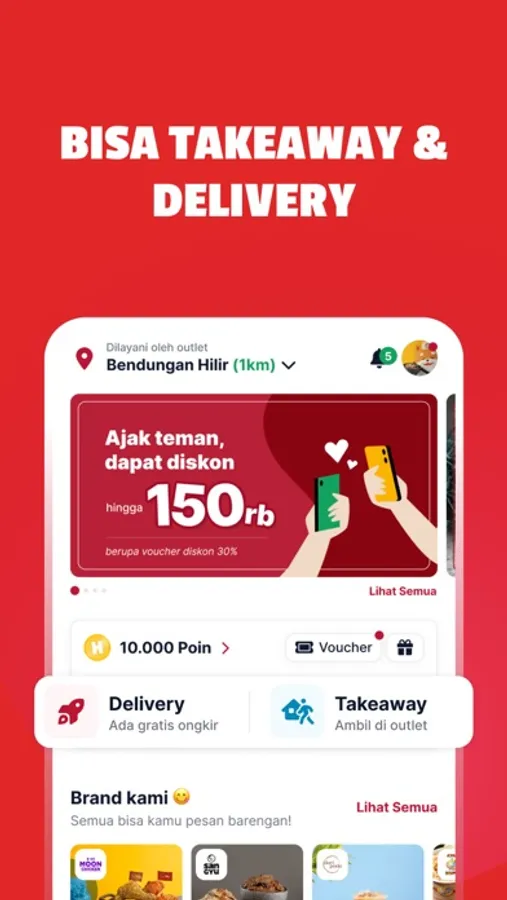 Semua menu dari brand kami bisa kamu pesan dan diantar sekaligus oleh GO-SEND/GRAB-EXPRESS dan ongkirnya bisa gratis hingga Rp15.000. Tinggal deket outlet? Tenang... bisa dipakai buat Takeaway juga kok!