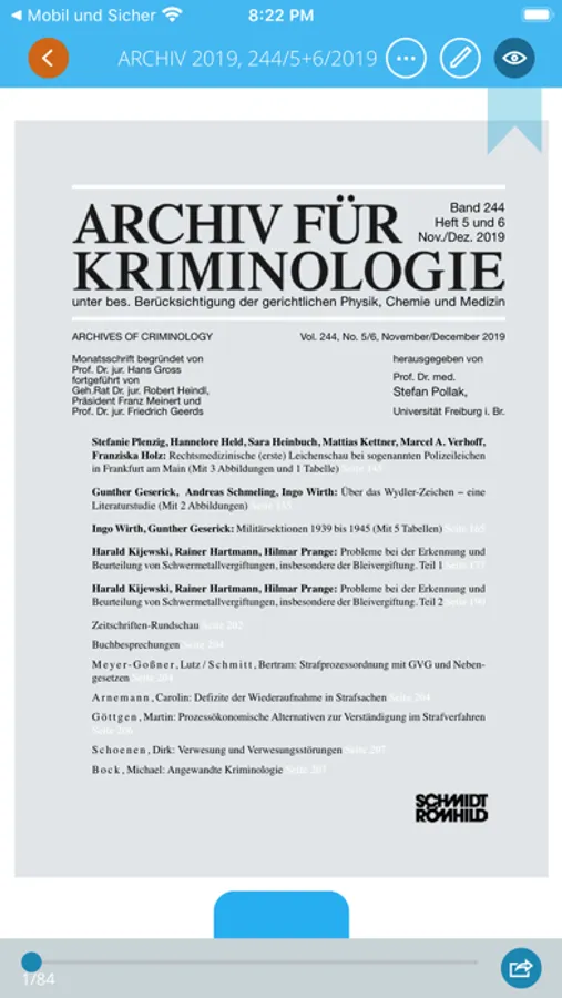 Herausgegeben wird das „Archiv für Kriminologie“ von Prof. Dr. med. Marcel A. Verhoff, Institut für Rechtsmedizin, Frankfurt/M.. Die Zeitschrift im DIN A5-Format mit vielen farbigen und s/w-Abbildungen erscheint sechsmal im Jahr.