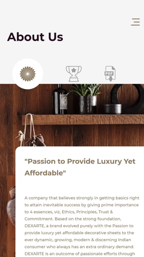 A company that believes strongly in getting basics right to attain inevitable success by giving prime importance to 4 essences, viz, Ethics, Principles, Trust & Commitment. Based on the strong foundation, DEXARTE, a brand evolved purely with the Passion to provide luxury yet affordable decorative sheets to the ever dynamic, growing, modern & discerning Indian consumer who always has an extraordinary demand. DEXARTE is an outcome of passionate efforts through huge experience in style, technology, comfort & affordability. DEXARTE designs are nature-inspired created with skillful craftsmanship offering a dazzling spectrum of stunning colors, classy textures, scintillating crystal Gloss giving enormous beauty to your environment.