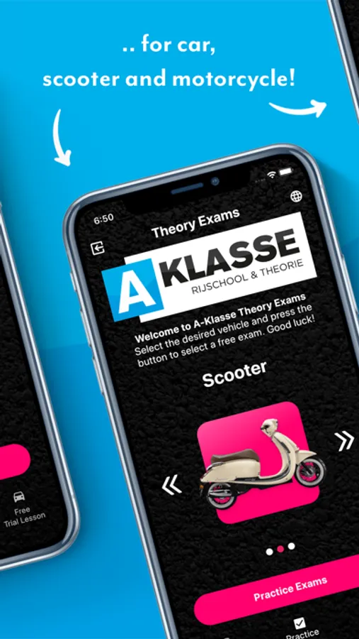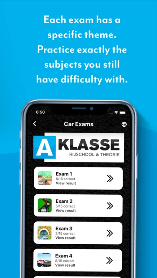 Practice theory exams with the app from A-Class Driving School. No costs with the possibility to apply for a free theory or driving lesson. The app also keeps track of your progress so that you know exactly which parts you have mastered well and which you do not.