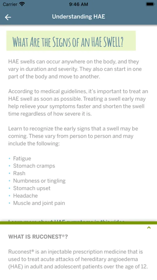 In addition to the above resources, the app contains educational material regarding our acute HAE treatment.