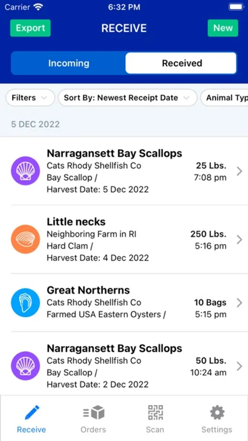 If you are a shellfish distributor, you know that filling out receiving logs, and producing dealer tags and attaching them to bags of shellfish for sale is time consuming and expensive. The BlueTrace Distributor app is your solution to handling the process of receiving and tagging your inventory.