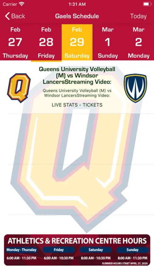 You’ll find it all here! Schedules for aquatics, casual recreation, group fitness classes, and Gaels home games. Reserve a squash court or register for Intramurals, Fitness & Wellness and Aquatics programs, and so much more!