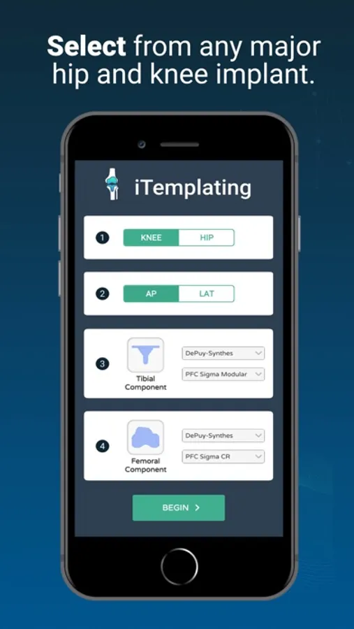 iTemplating uses the latest in augmented-reality (AR) technology, to create a faster and simpler templating experience, in the palm of your hand. We recognize that practicing orthopedic surgeons are too busy to template for every case. That’s why we’ve built a solution so easy-to-use that your device rep, resident, fellow, or physician-extender can create an accurate template, everytime.
