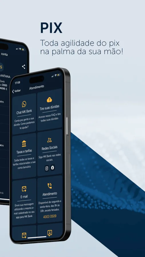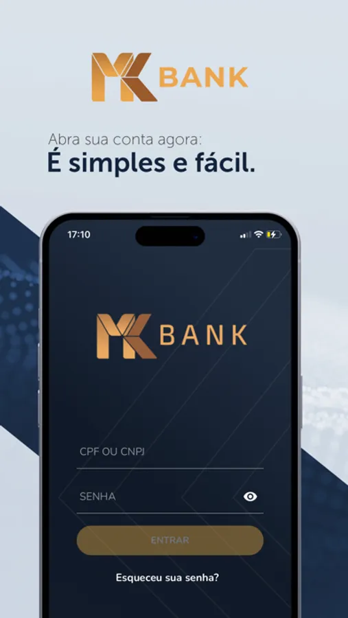Conta 100% digital e gratuita. Baixe o app do MK BANK, e faça todas as suas transações bancárias com praticidade e segurança.