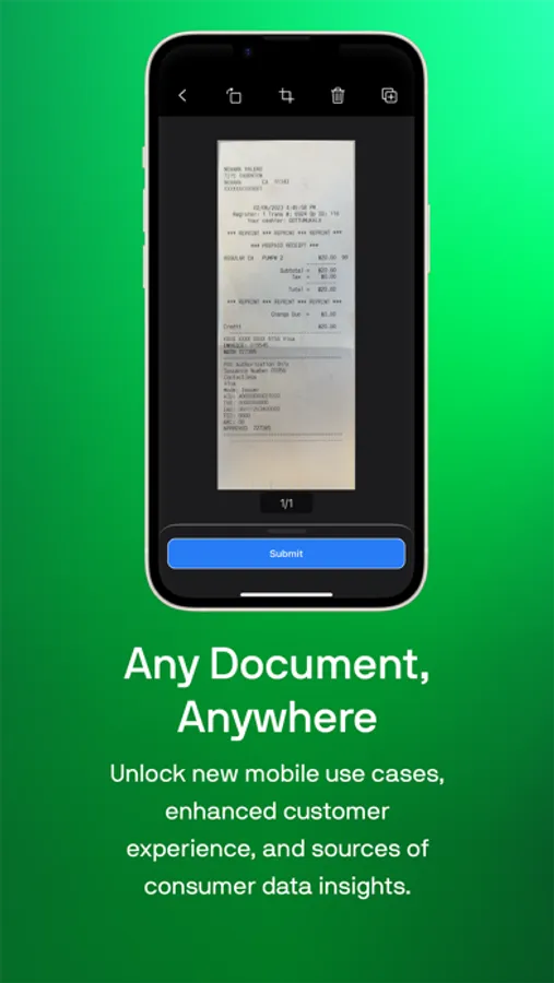 Veryfi’s Lens framework can be plugged into any mobile app (even cross-platform frameworks) with only a few lines of code. This instantly gives your app superpowers to capture and extract data at geographic scale with accuracy that surpasses human labor.