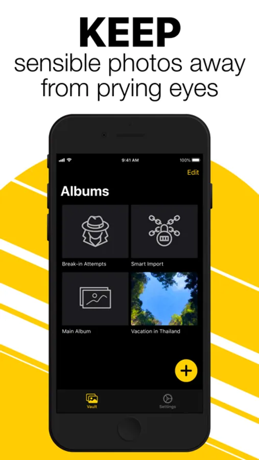 - Break-in report in case someone tries to access your vault (photo + timestamp)