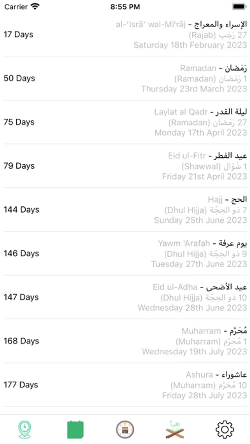 You can read the holy Quran in your preferred riwayat: Hafs, Warsh, Qaloun, Ad-Douri and Shubah. SalatOnTime displays Quran in beautiful images and tafsir option.