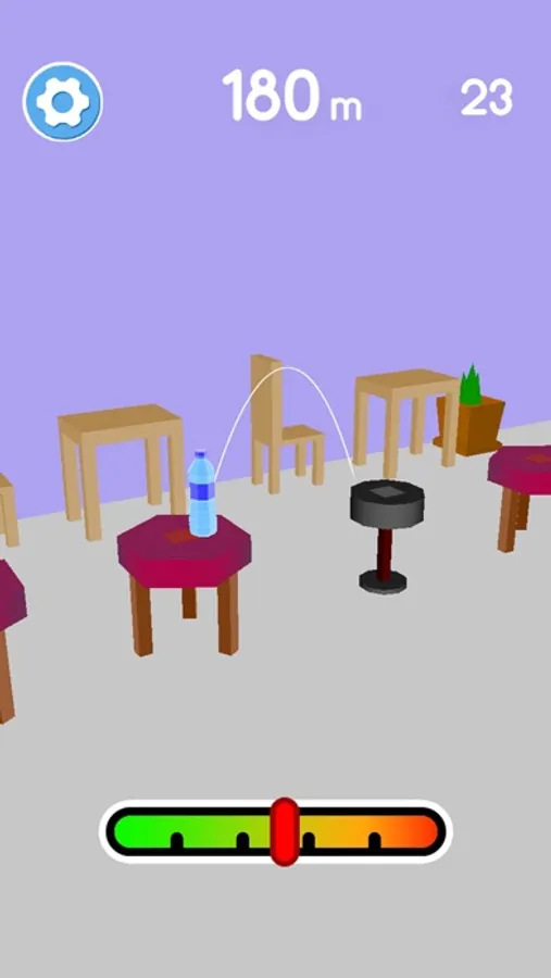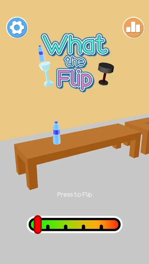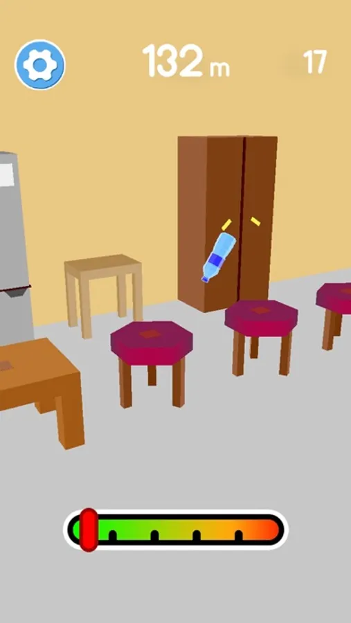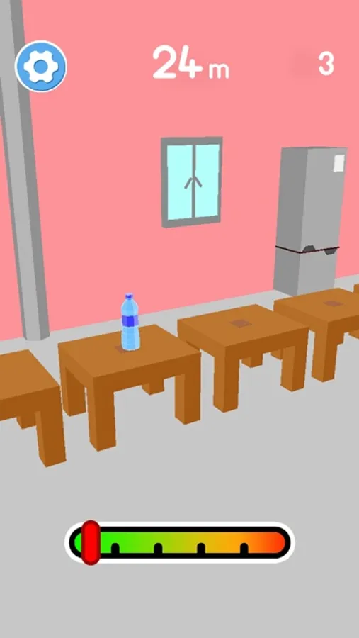 Tap and hold the screen to apply force, release to flip the bottle toward the next desk. Choose your timing wisely and don't let the bottle falls!