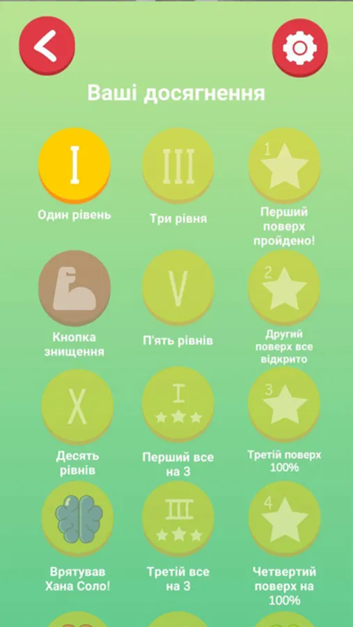Проходячи тести і рівень ти отримуєш різні досягнення і рейтинг в грі.