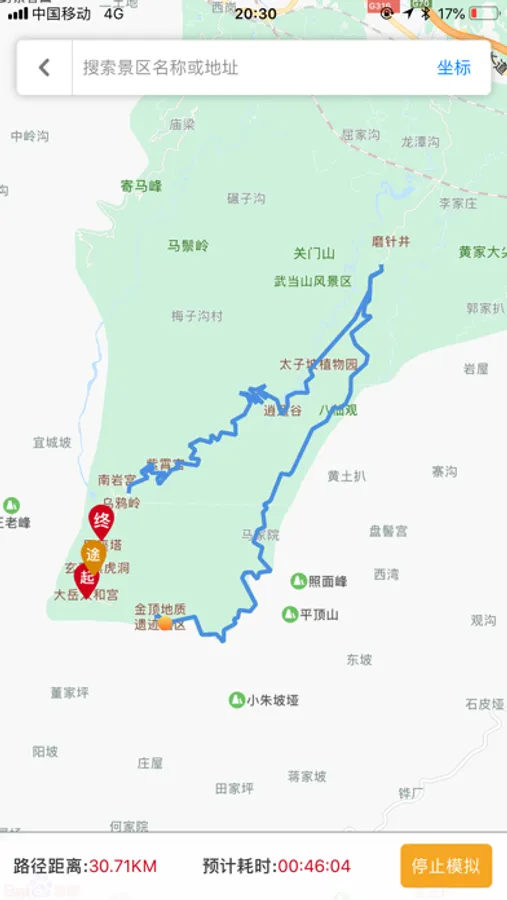 3.旅游路径规划-可以设置起点和途径点以及终点,设置步行或驾车以及不同的选路策略以及速度,开启模拟后会实时显示剩余里程数和剩余时间.模拟路线规划,让您的路线更清晰以及时间可提前合理规划,避免走弯路.