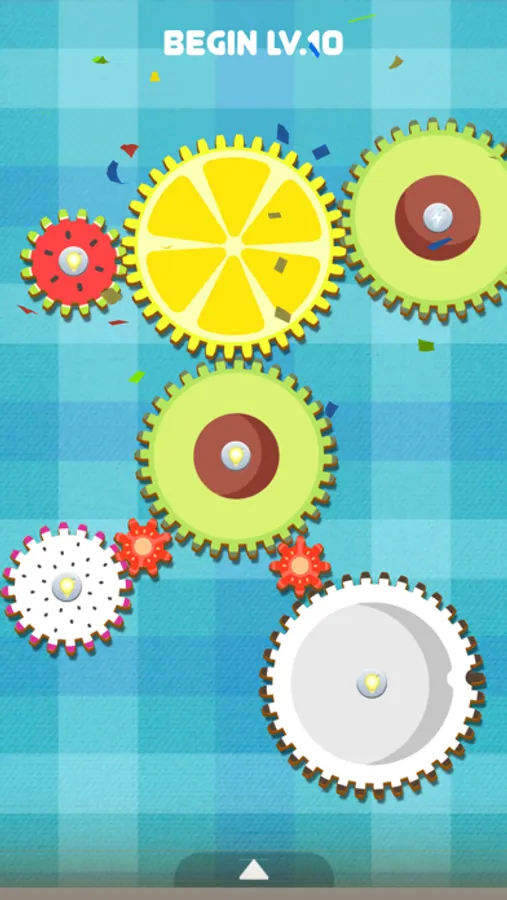 • Drag and move the given gears to connect all the fruit gears so that they spin together.