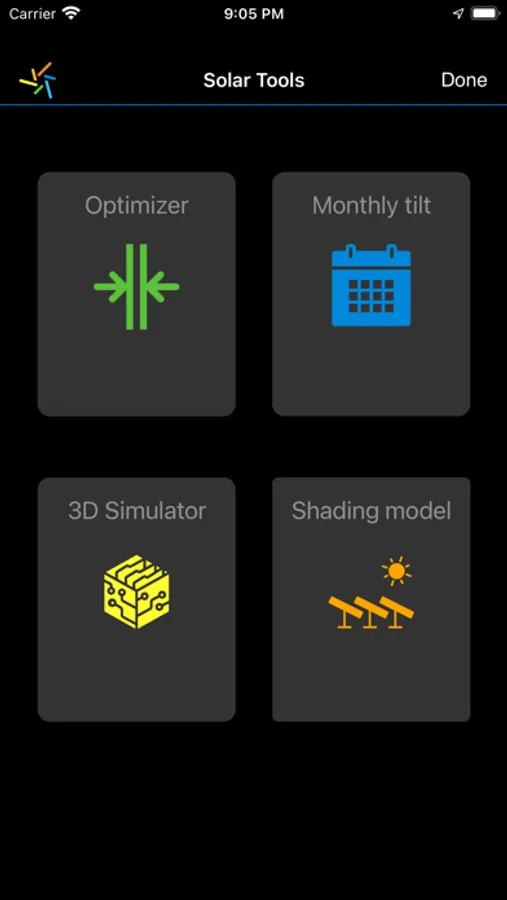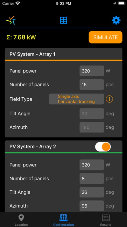 - Live 3D Panel Simulator: your phone is simulating a solar panel, rotate it to get what will be the real output from your solar panels, depending on the orientation