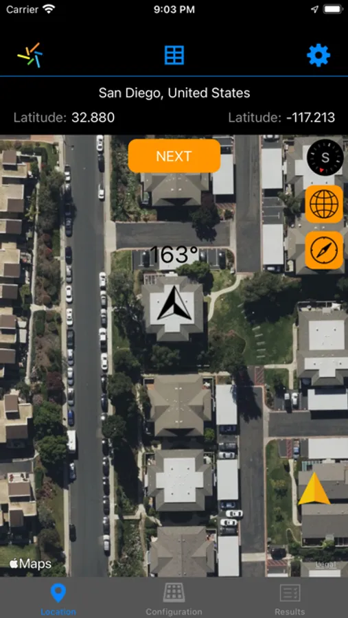 - Satellite maps, measuring azimuth on field and on map
