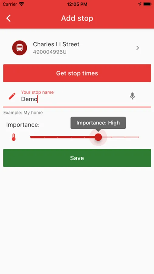 → Edition. You can modify or delete the names, the importance and even the number of the stop itself by simply sliding or dragging a stop.