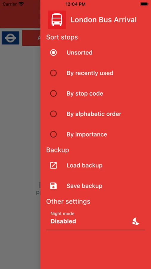 → Backup. You can load and save backup all your stops will be stored in a file in the memory of your device.