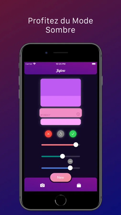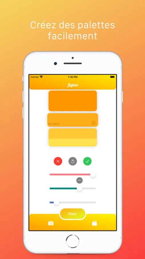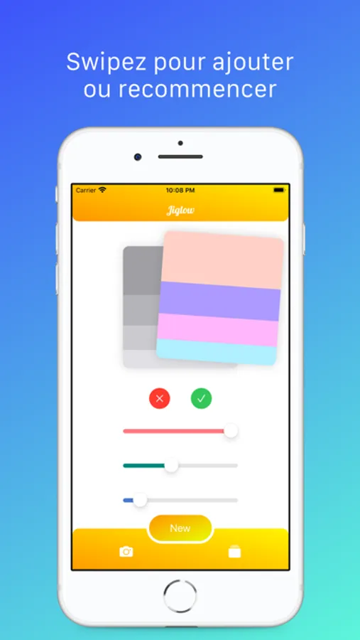 Jiglow est une application qui ravira les digital-designers. Elle vous permet de créer des palettes de couleurs facilement, de les sauvegarder en swipant à droite et de les modifier ensuite.