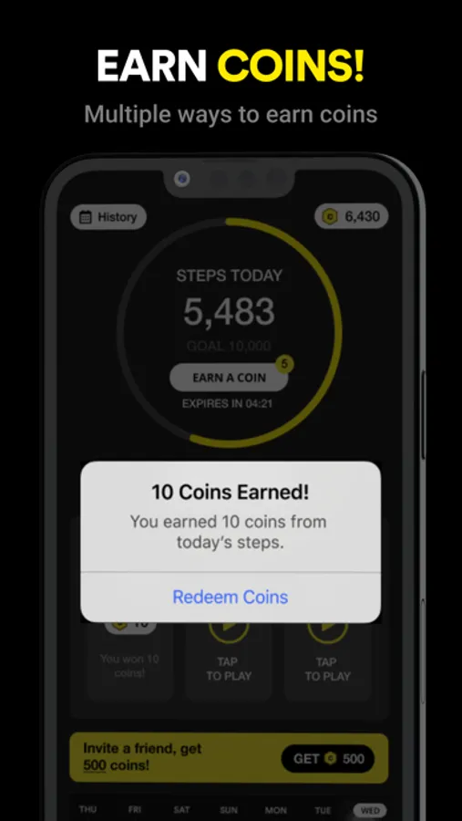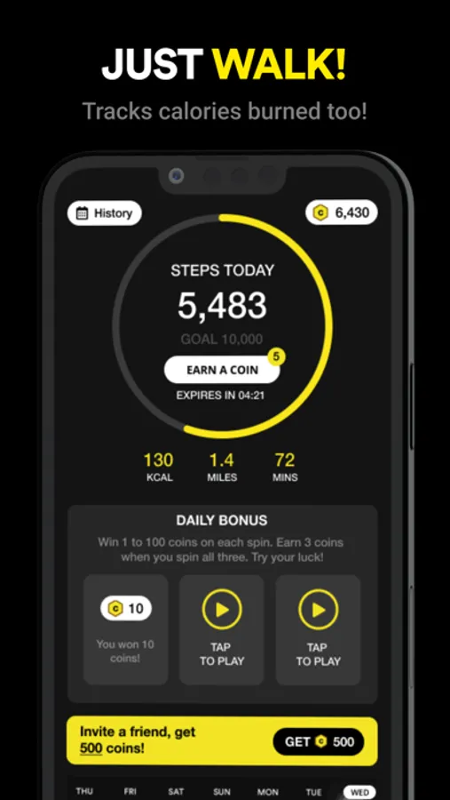 3. Earn coins for every step you take while also tracking calories, distance, and minutes walked.