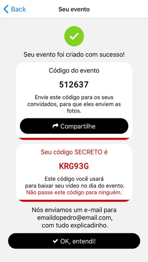 - Seus convidados baixam o aplicativo e enviam fotos e mensagens.