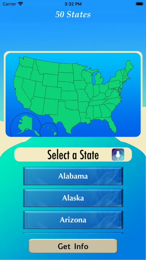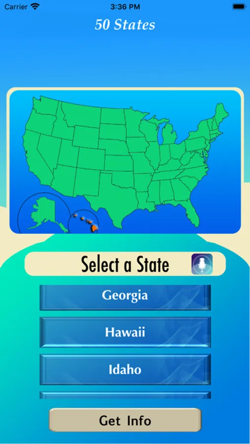 This app will give you information about the 50 States of the United States of America. Use voice recognition to select the states.
