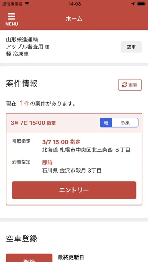 ■ハコブリッジアプリとは、ハコブリッジポータルサイトに登録された荷主様の「(緊急)配送依頼」を、GPS、ドライバースケジュール管理機能、登録車両情報など様々な情報を利用し、依頼内容にマッチし、かつ業務可能な車両のみに配信される配送業務依頼を受信し、エントリーするためのものです。