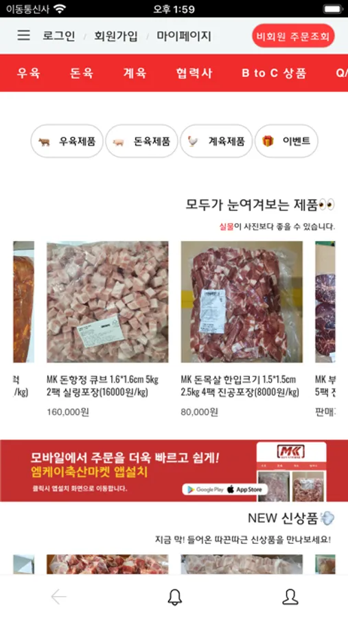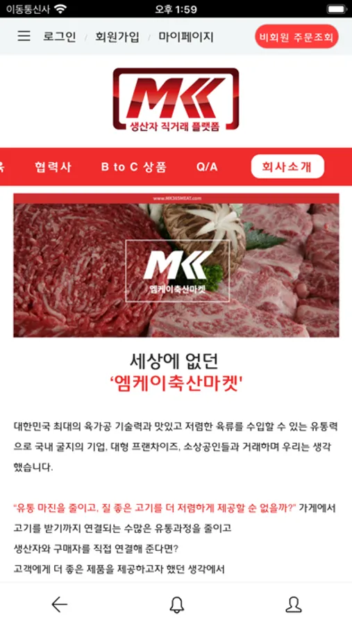 동일한 등급의 고기를 다른 가격으로 공급받는 소상공인에게 정당한 가격을 제시하고 자체 유통을 위한 운송차량 보유로 빠르고 신선한 제품을 공급하고 HACCP인증과 규격화된 상품으로 안심하고 이용할 수 있는 엠케이축산마켓이 되겠습니다.