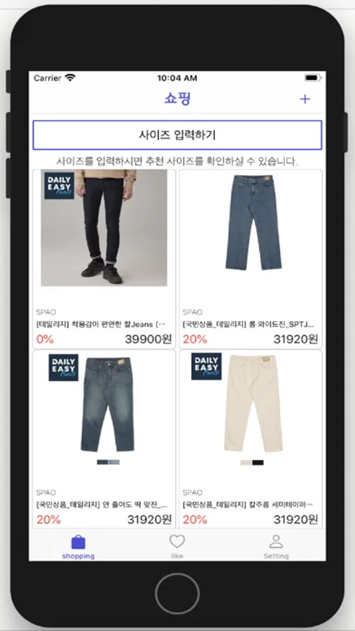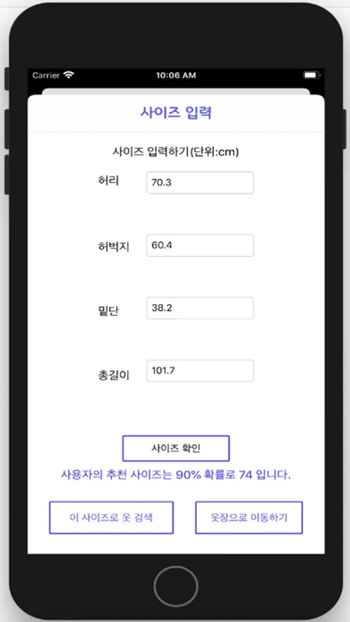 사이즈를 측정 후 사이즈를 추천하고 추천된 사이즈가 있는 바지를 추천해