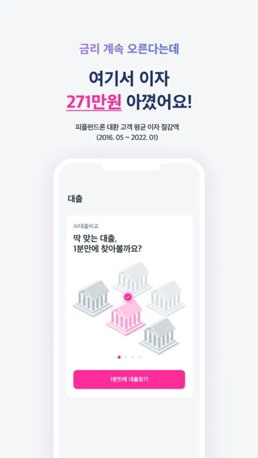 (대출비교서비스에 입점한 피플펀드론의 대환 고객 평균 이자절감액 - 집계기간 : 2016.05~2022.01)
