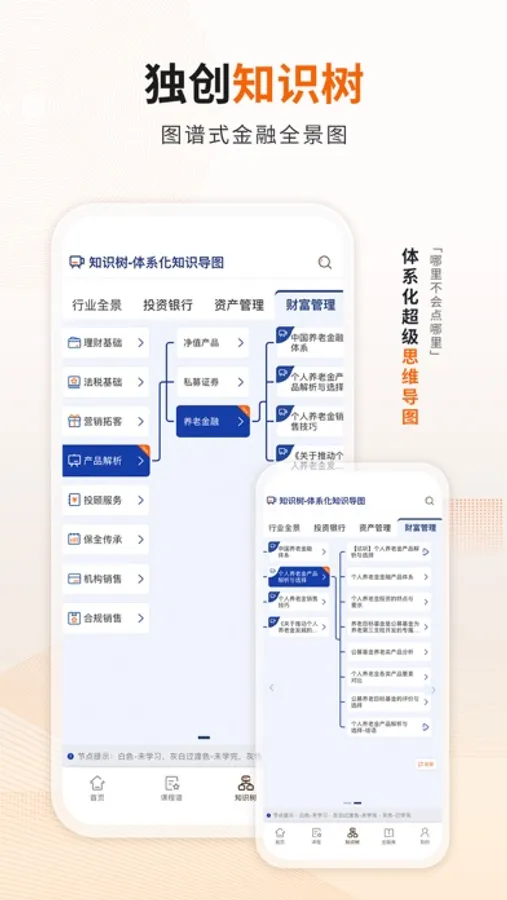 ▪ 体系化:将纷繁复杂的知识构建体系树架构,按思维导图形式层层递进展示。