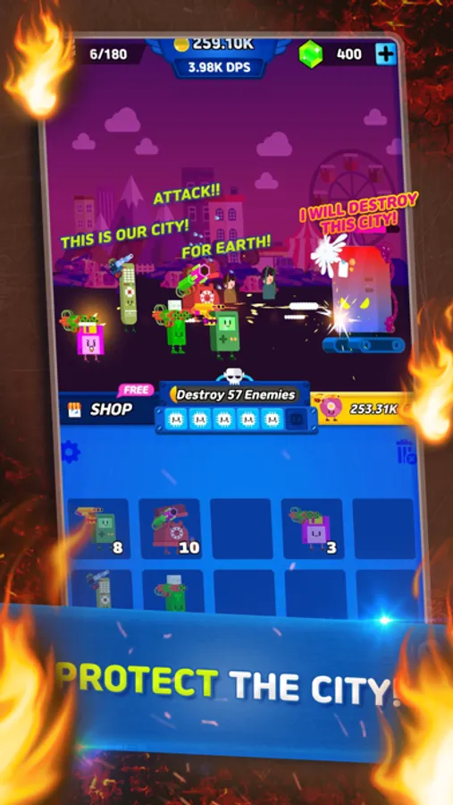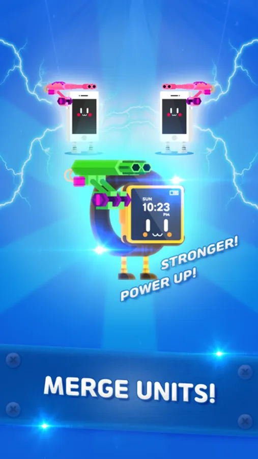 Evil electronics army are invading Electro City! Can you merge and build your Electronic friends to protect it fast enough?