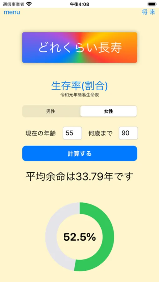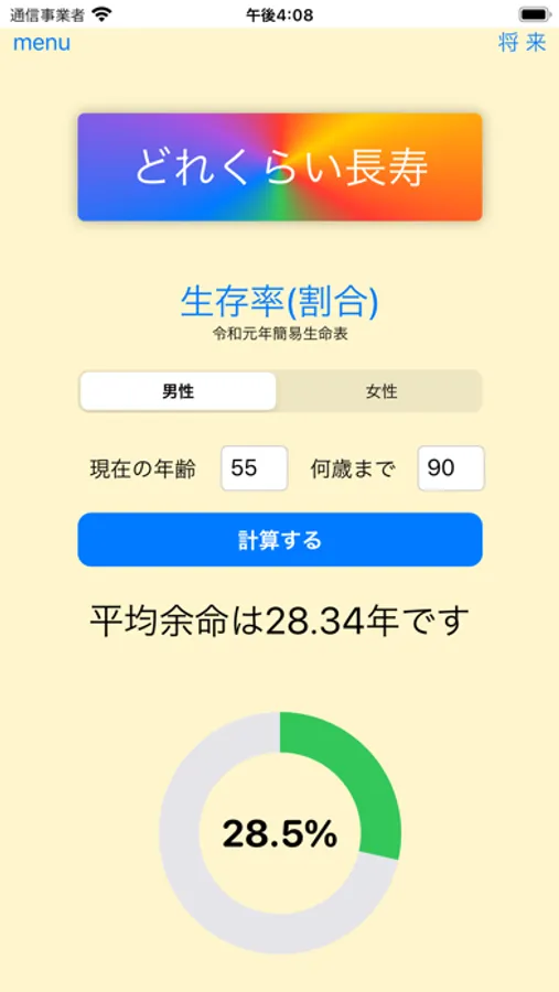 なお、あくまでも日本人全体での生存率を計算するものであって、特定の個人の生存率を表すものではないことはご注意ください。