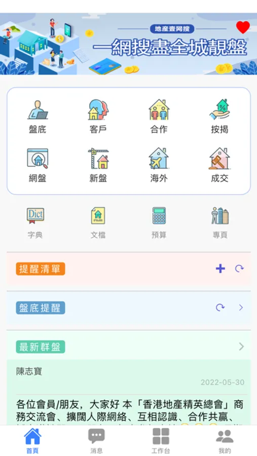 遍佈全港,超過15,000名香港地產代理的樓盤廣告,成為全港最大的地產代理合作平台!兼有多個地產代理必須的工具,包括:電子委託書,優先獲取成交數據和叫價資訊,模擬查冊,一手和二手在售樓盤混合查找,擁有代理個人的盤底,也可連接經紀店的AgentBase,與公司盤底互動,是香港地產代理的流動辦公室!