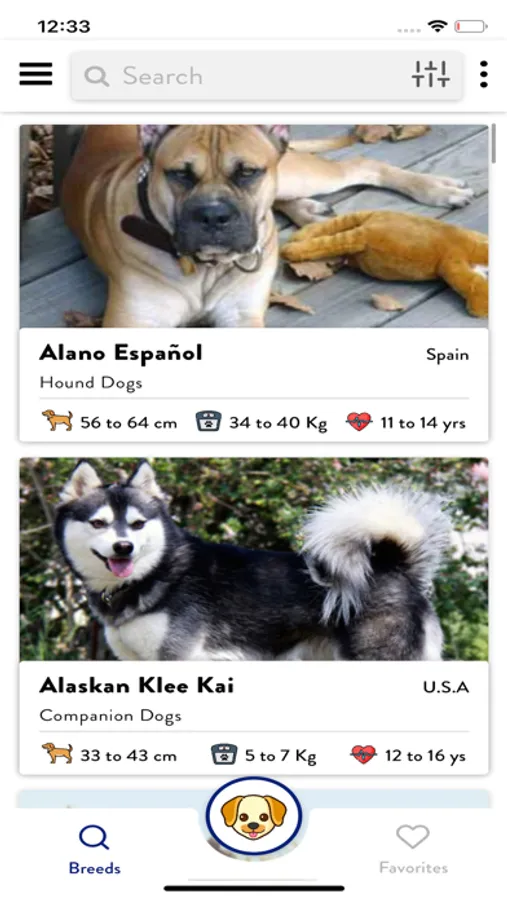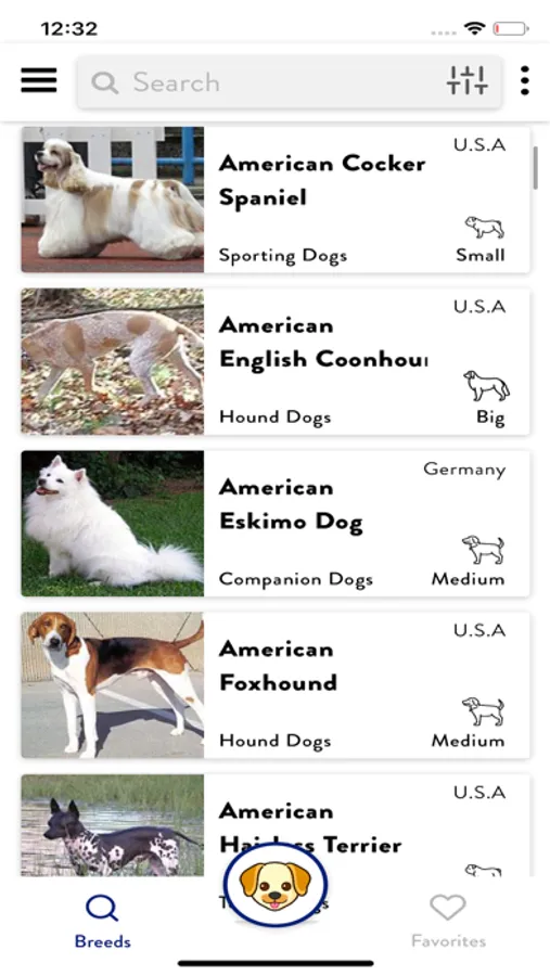 Searching: Maybe you want to search for a particular dog breed but you can’t seem to remember the name. This app lets you find all the Dog breeds using efficient sorting parameters such as size, popularity, height, etc. And more…