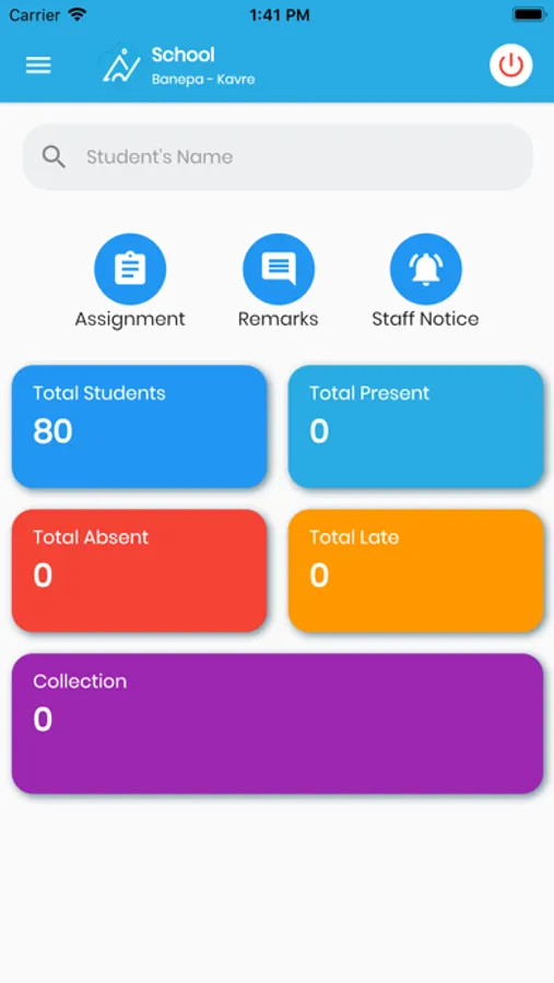 The principal or admin can have access to additional features such as overview of notifications, assignments and remarks. Admins can also view all student profiles and details.