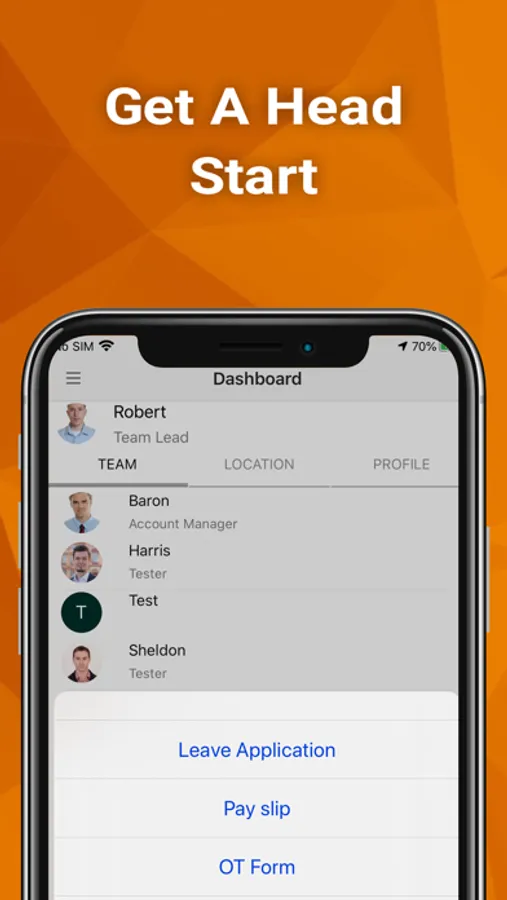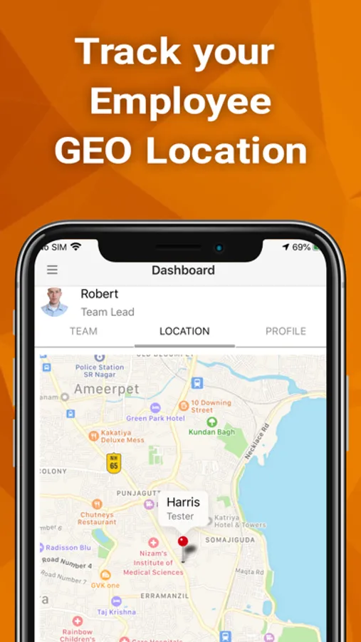 The Dashboard/Home page showcases Employee’s details(profile) like Employee-Id, Date of Birth, Date of Joining, Designation, Department etc. Based on the rights provided to the they should be able to look at Team members and geo location.