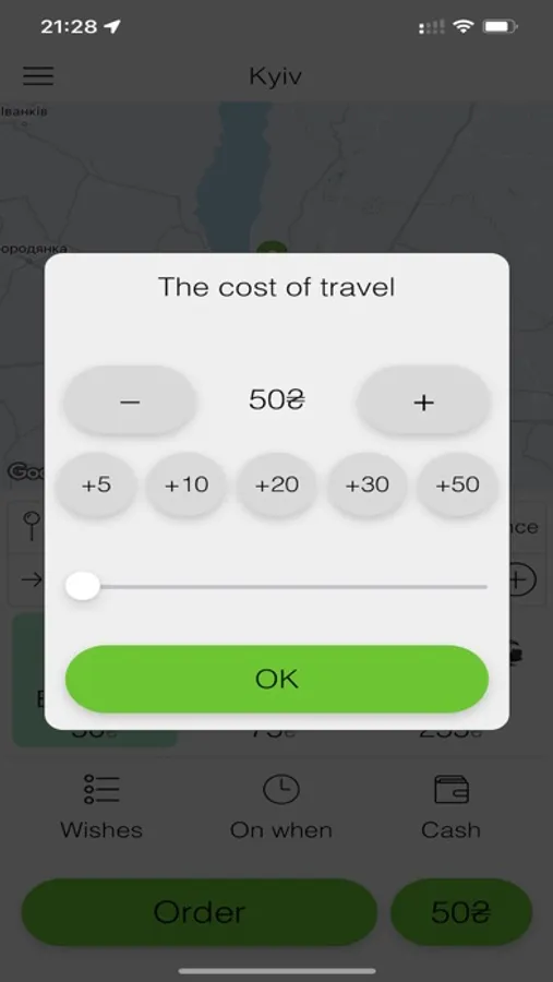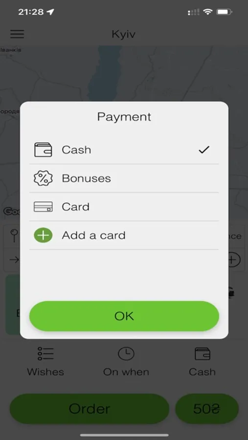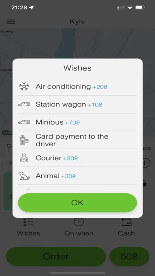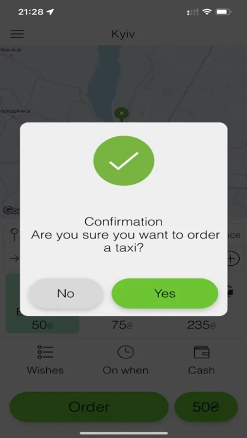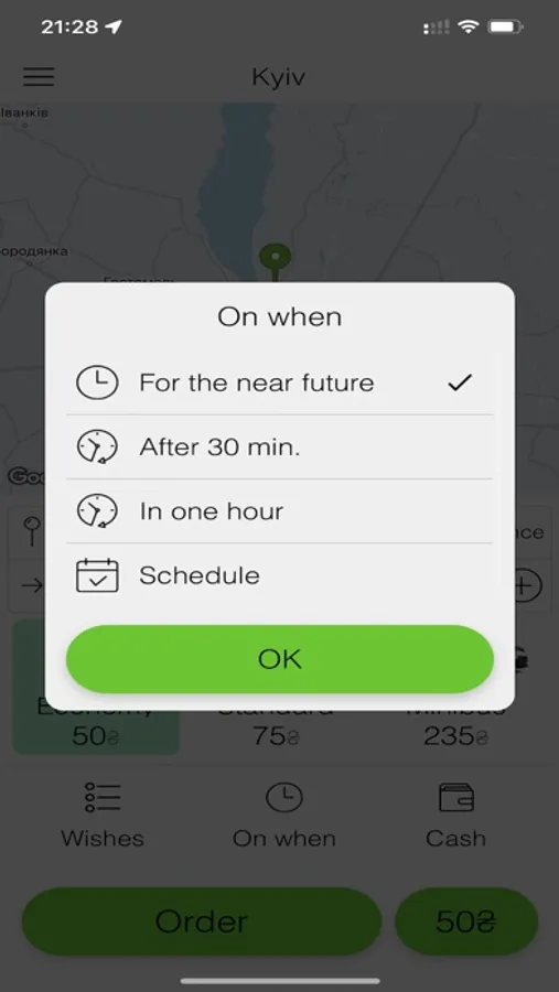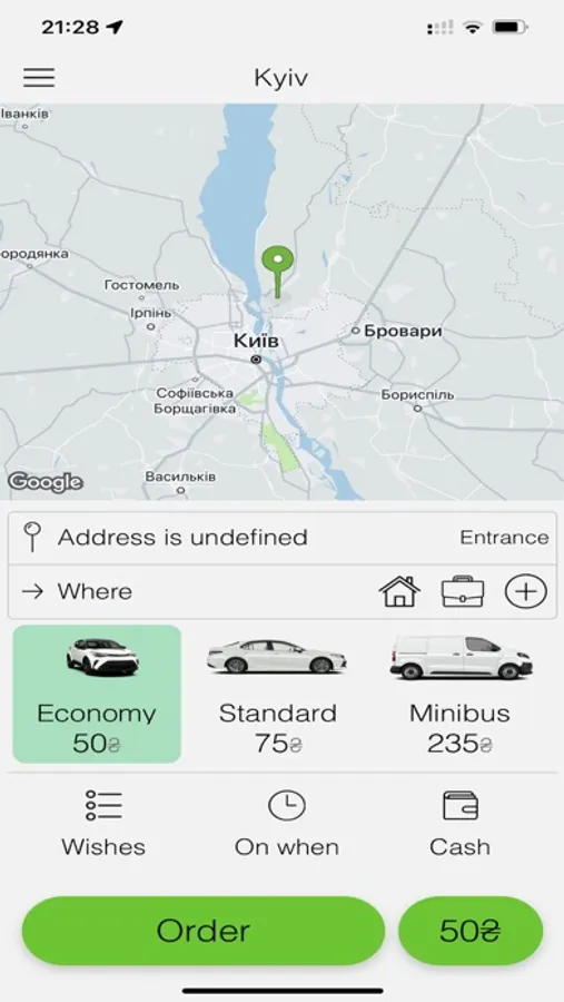 So, "Beru taxi" app will help you book a taxi online in a matter of minutes, taking no account of where you are or what time it is. The app’s menu “Map” will show your location in real time, no matter what city of Ukraine you are in, and a box for manually selecting an area and city is handy when you are planning a trip and want to find out how much it may cost you.