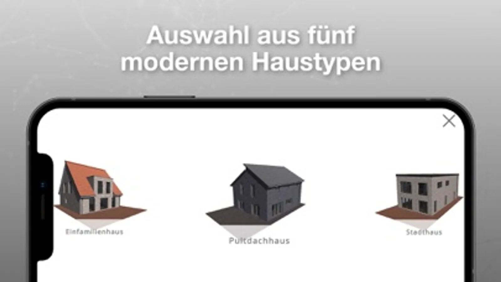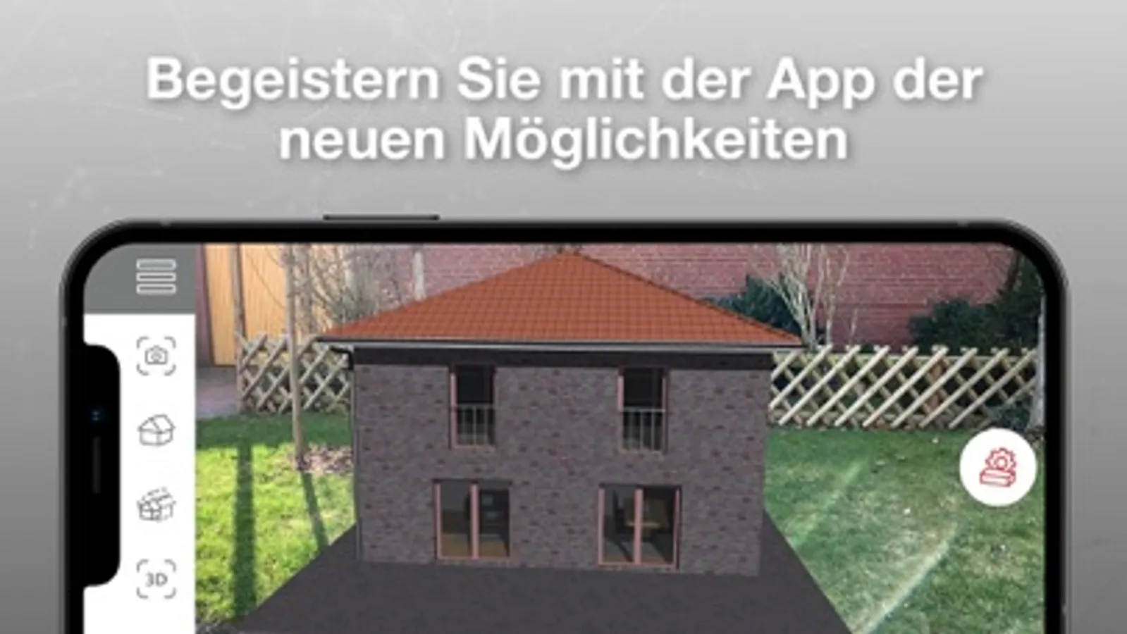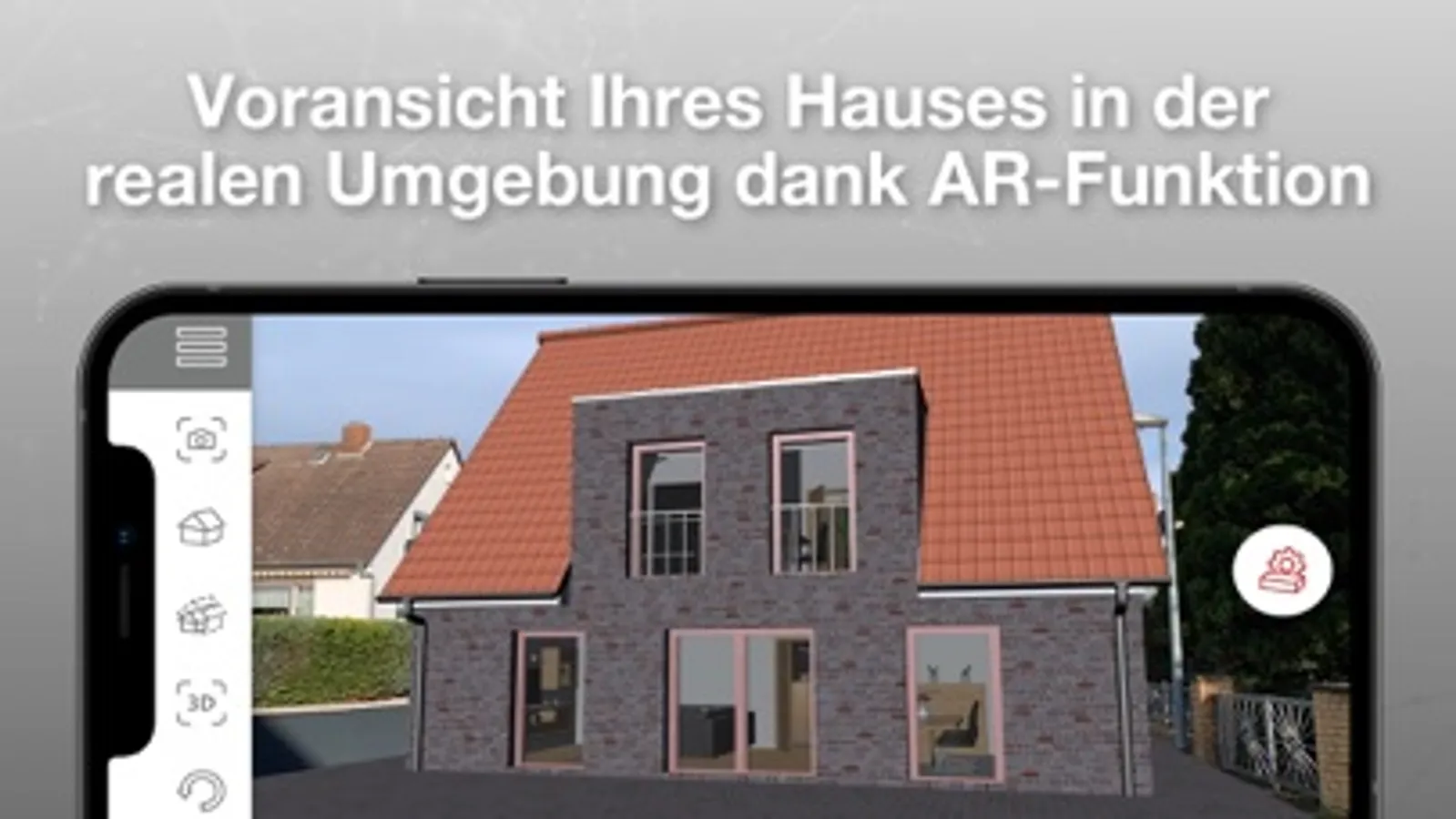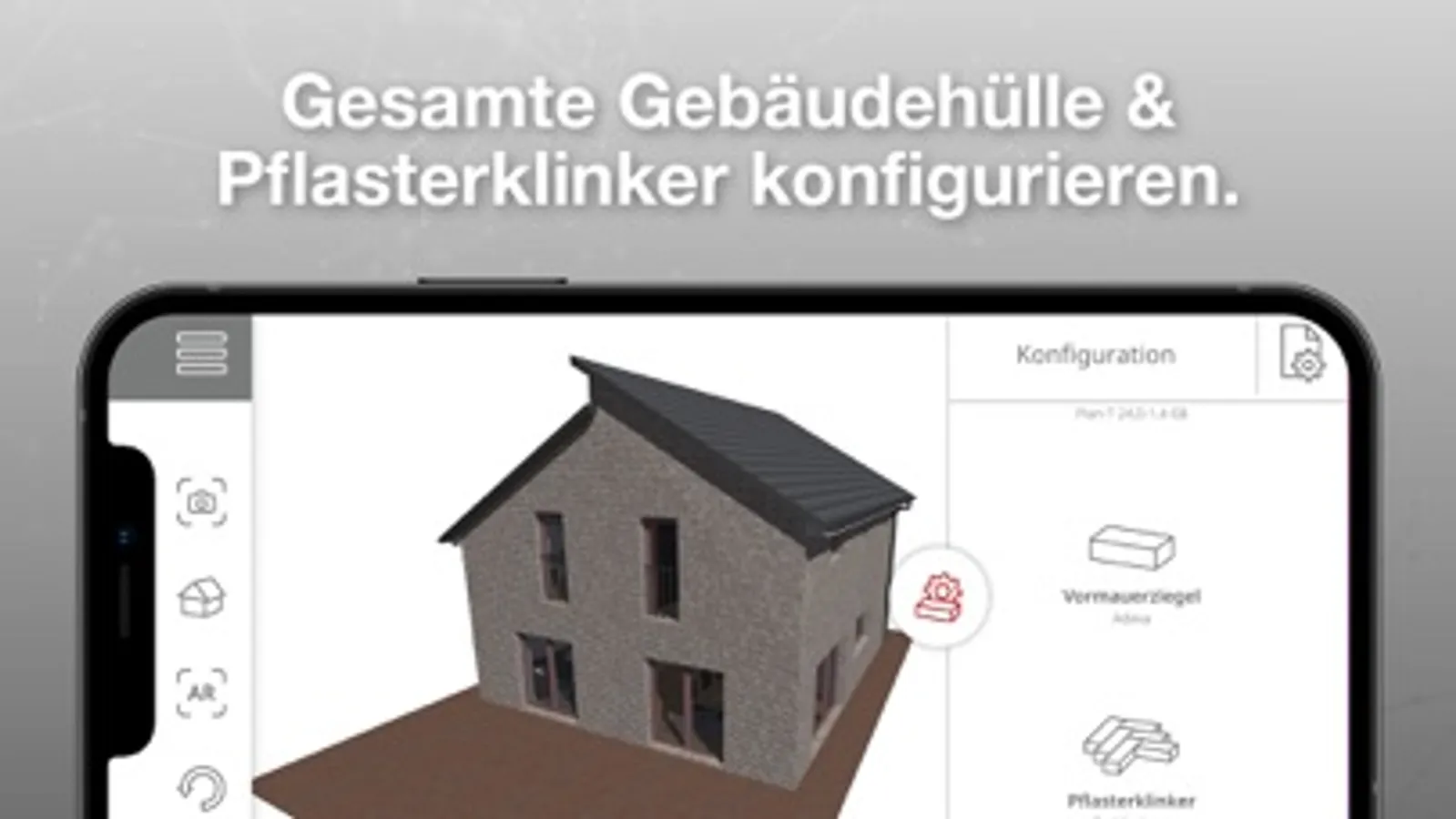 Haben Sie sich für Ihre Baustoffe entschieden? Dann können Sie spielerisch leicht in den Haus-Konfigurator wechseln und die Hausplanung vorantreiben. Im Augmented Reality Modus bietet sich unter anderem die Option, den Hausbau im freien Raum, zum Beispiel auf einem Baugrundstück, anzuzeigen. Darüber hinaus ermöglicht es die App auch, über einen entsprechenden Button, das Haus im Verhältnis 1:1 skalieren zu lassen. So können Sie dank 360-Grad-Ansicht und Zoom-Effekt das Gebäude nach Ihren Vorstellungen gestalten. Ganz einfach und ohne Mehraufwand!