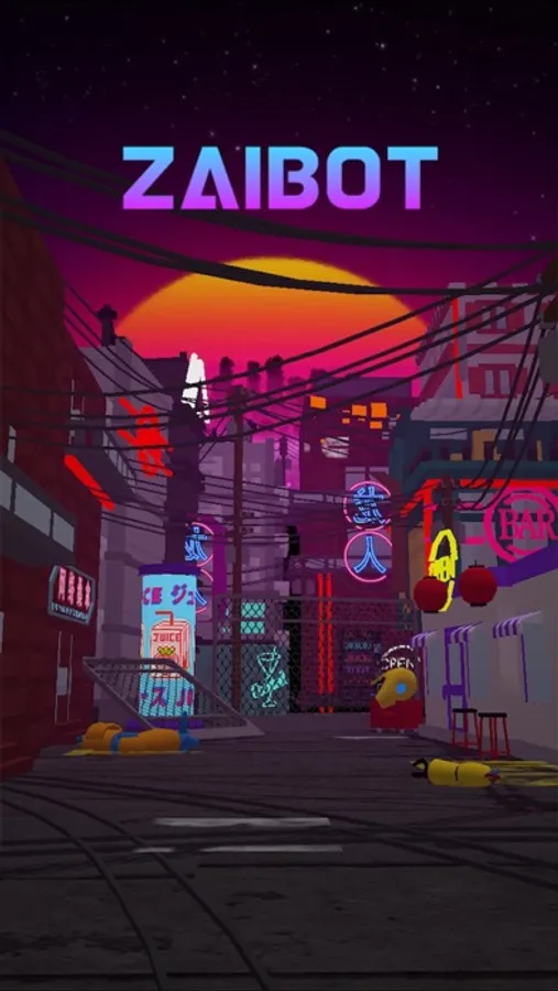 Zaibot, the protagonist who is seeking answers after a mysterious wipe out in a cyberpunk city.
