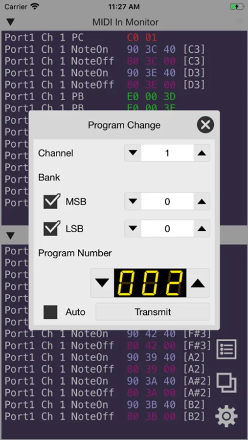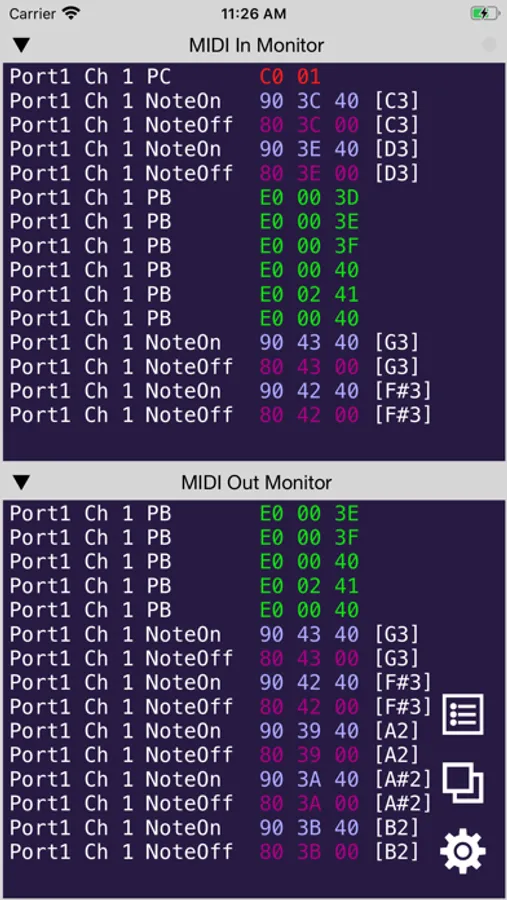 It is also possible to operate your MIDI instrument with MIDI messages using this app.