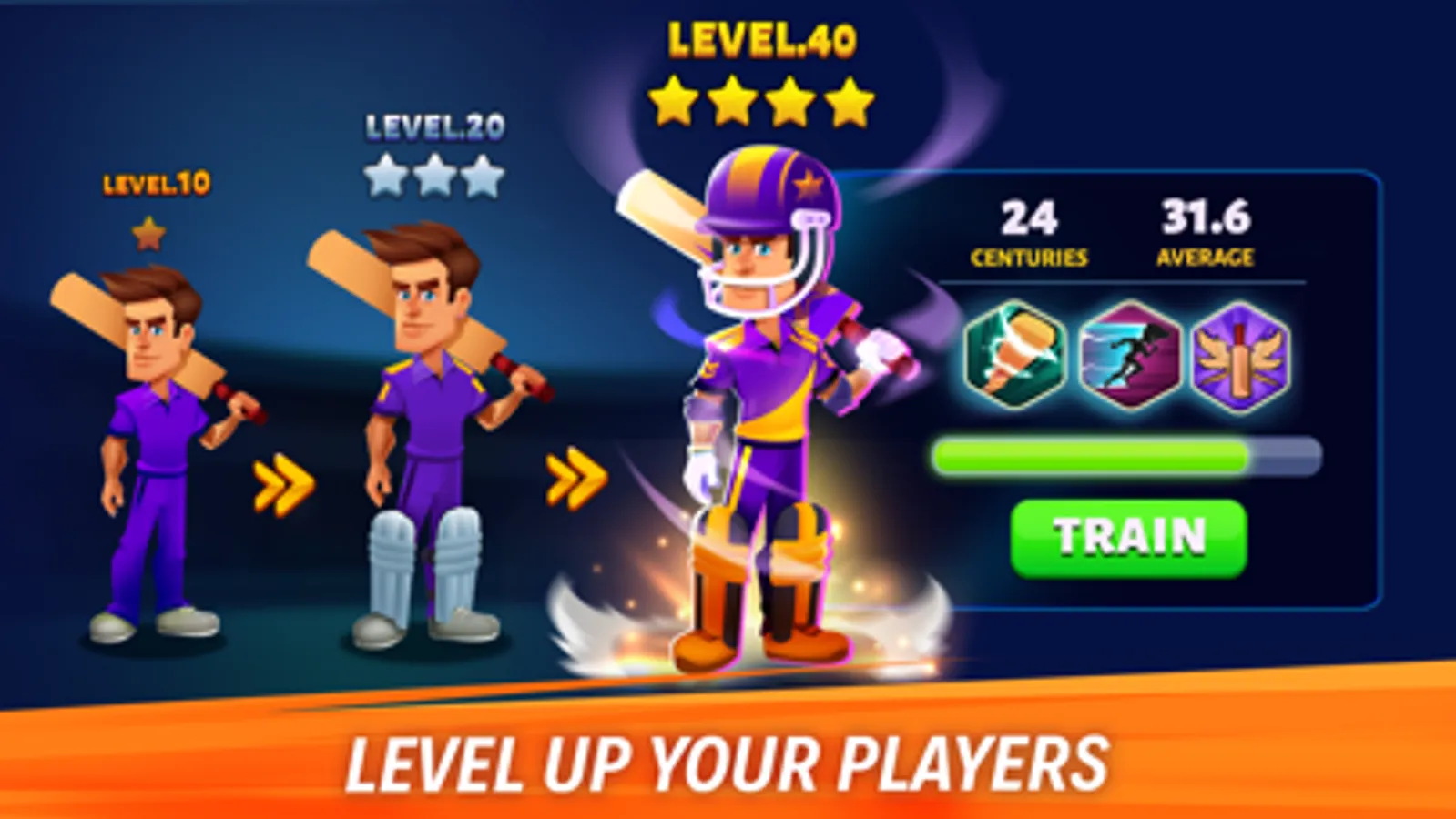 Career Mode & Auctions: Play cricket league mode and dominate the live score board. Participate in real-time auctions to bid for world-class batsmen and bowlers, train them, and build your dream team to conquer the cricketing arena.