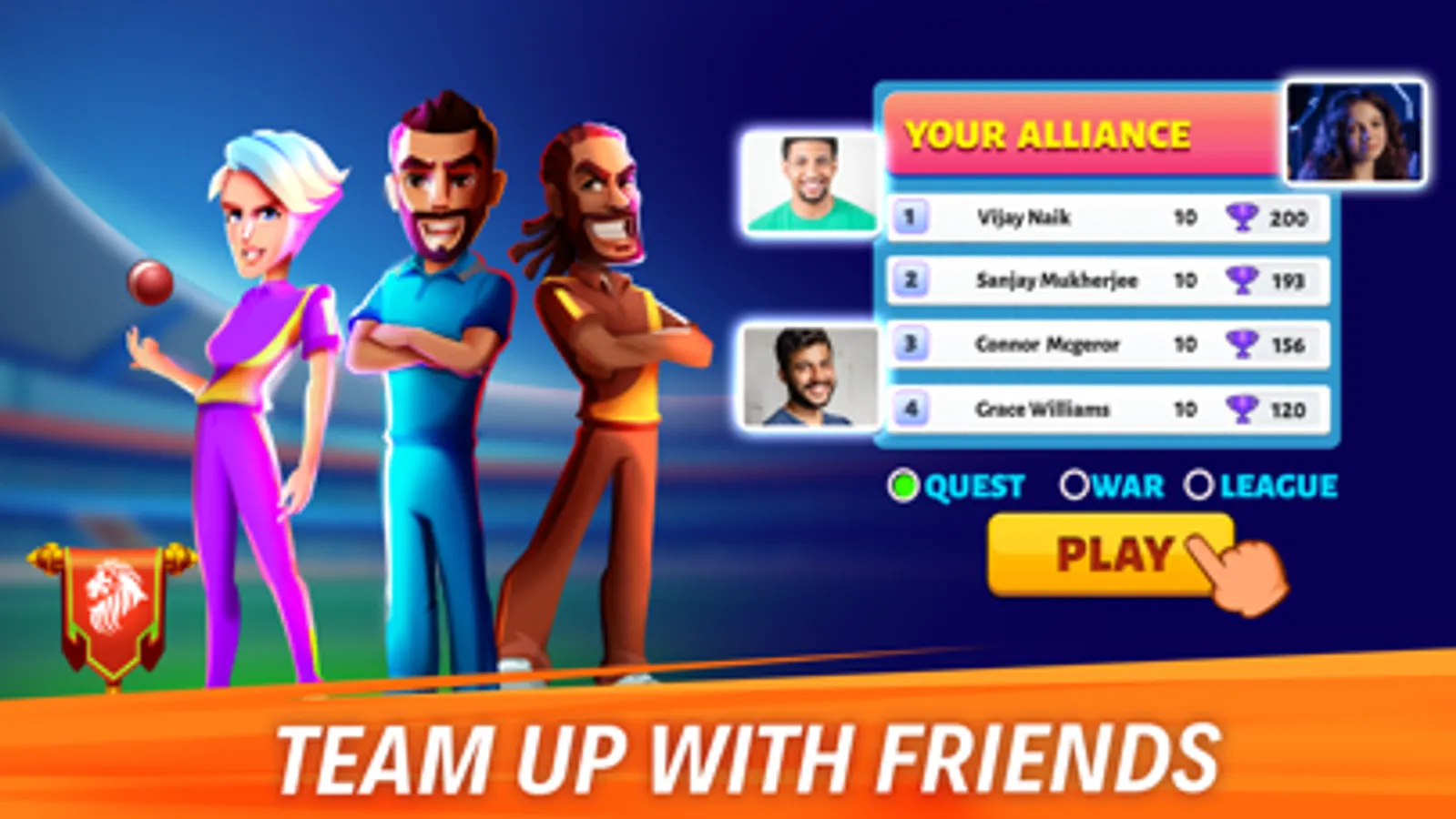 Alliance Wars: Team up with fans worldwide for clash between alliances in virtual world matches. Play alongside your gully cricket friends and aim to become the world cricket champions in intense battles, together.
