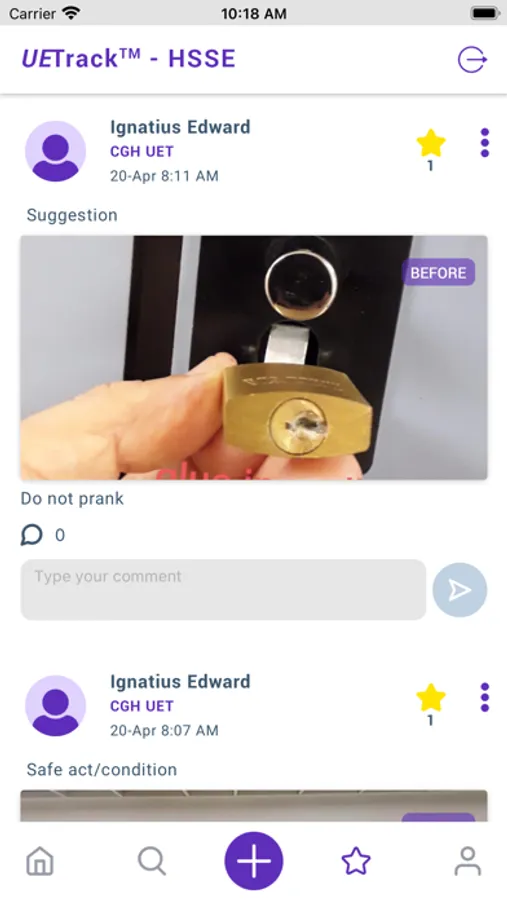 By providing this app all the users will be able to take a picture and tag the workplace risk category and submit to the Safety officer to review.