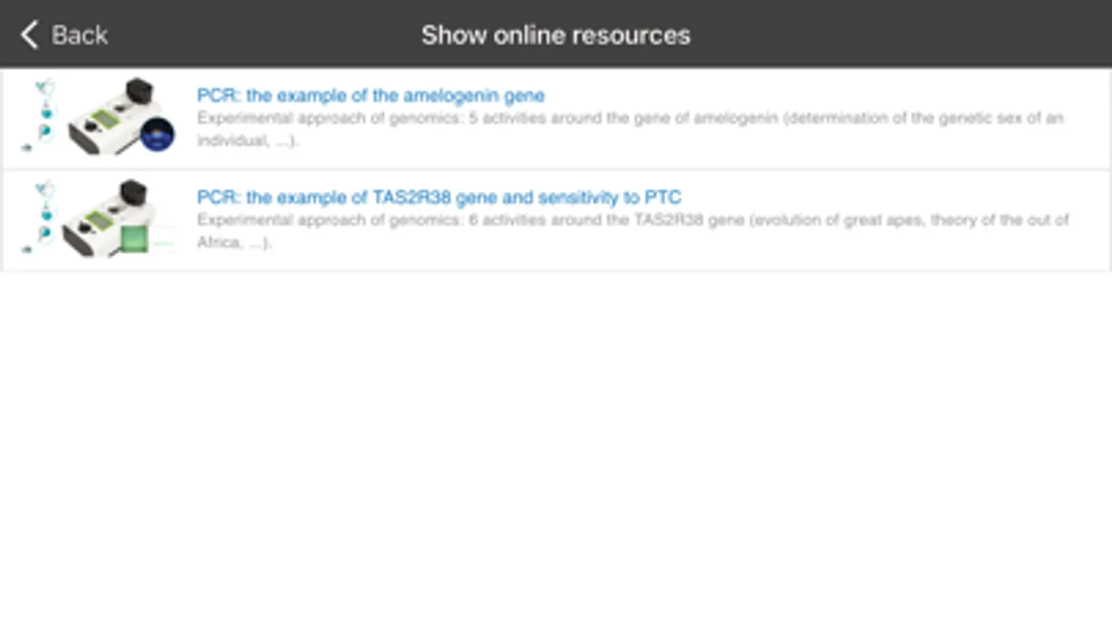 Les durées d'amplifications sont courtes (25 à 70 min suivant les TP) car le thermocycleur bénéficie d'un module à effet Peltier.