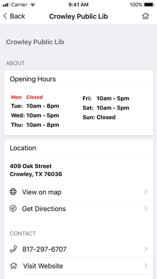 The Crowley Public Library is located in the heart of Crowley, TX. The staff is dedicated to providing exceptional service to each member of our community! Access the library from your iPhone, iPad, or iPod Touch. Manage your account, search the catalogue, renew and reserve books.