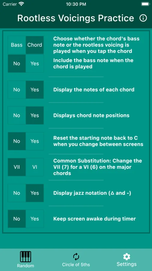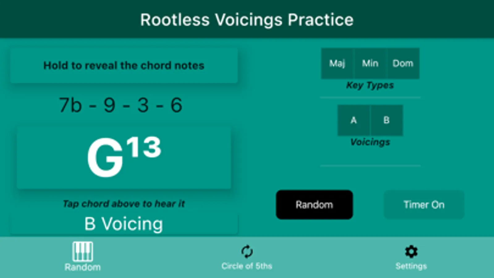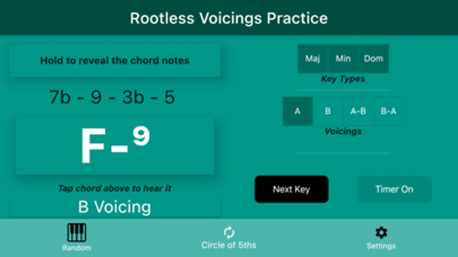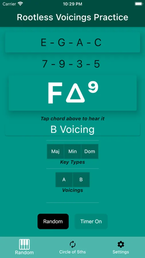 Do you need help learning your rootless voicing chords, or just need a helping hand when practicing them? If so, then look no further. This app is just for you! It allows you to: