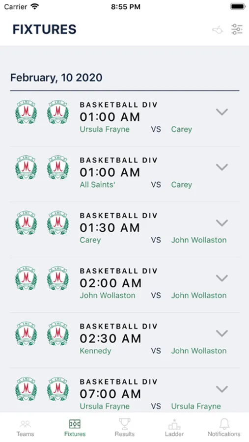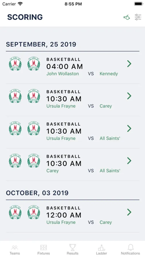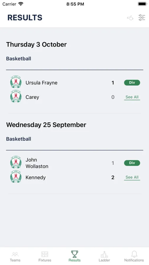 - Match results
