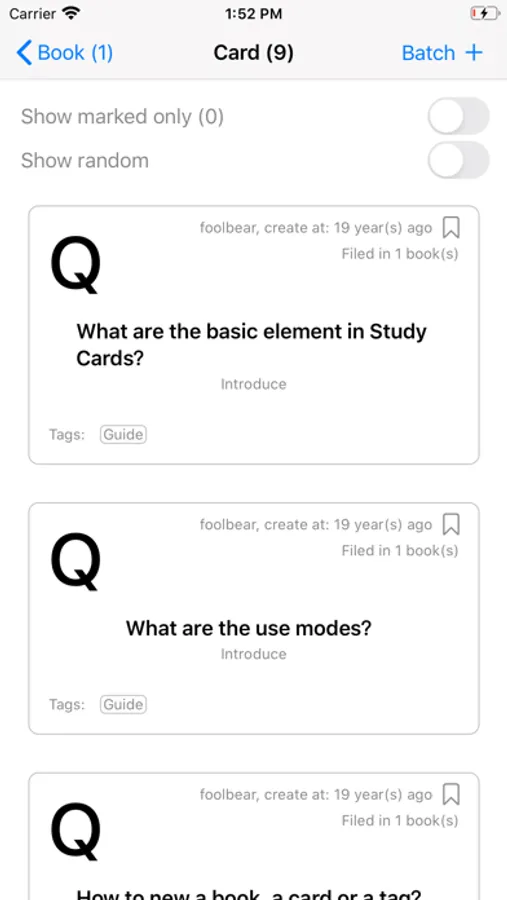 There are two sides of the study card: Qusetion and Answer. Click the Q / A character to flip.