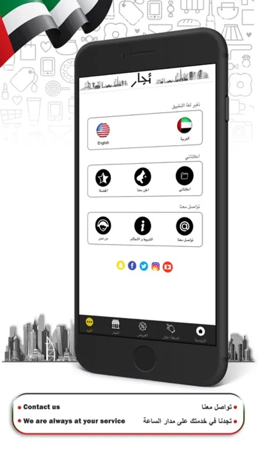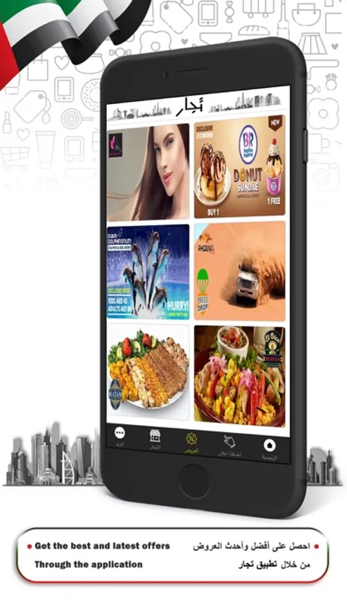 التطبيق الاول والافضل في الامارات العربية المتحده للاعلانات والمشاريع المنزليه والتجار يحتوي على :