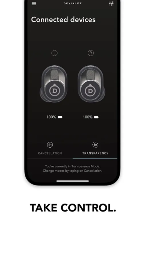Take full control of your earbuds with Devialet Gemini dedicated app.