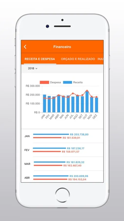 - comparativo de orçado versus realizado (gráficos e detalhamento)